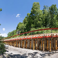 Bewehrte Spritzbetonwand, temporäre oder permanente Rückverankerung. Die ideale Lösung für schwer zugängliches Gelände.